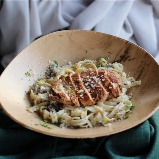 فوتوتشتي بالدجاج مع صلصة كريمة الفطر