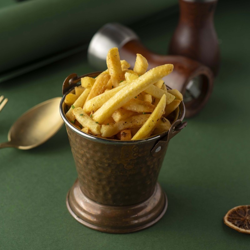 3 قطع من لحم البقري ، طماطم، خس، كوكتيل صوص تقدم مع البطاطس المقلية